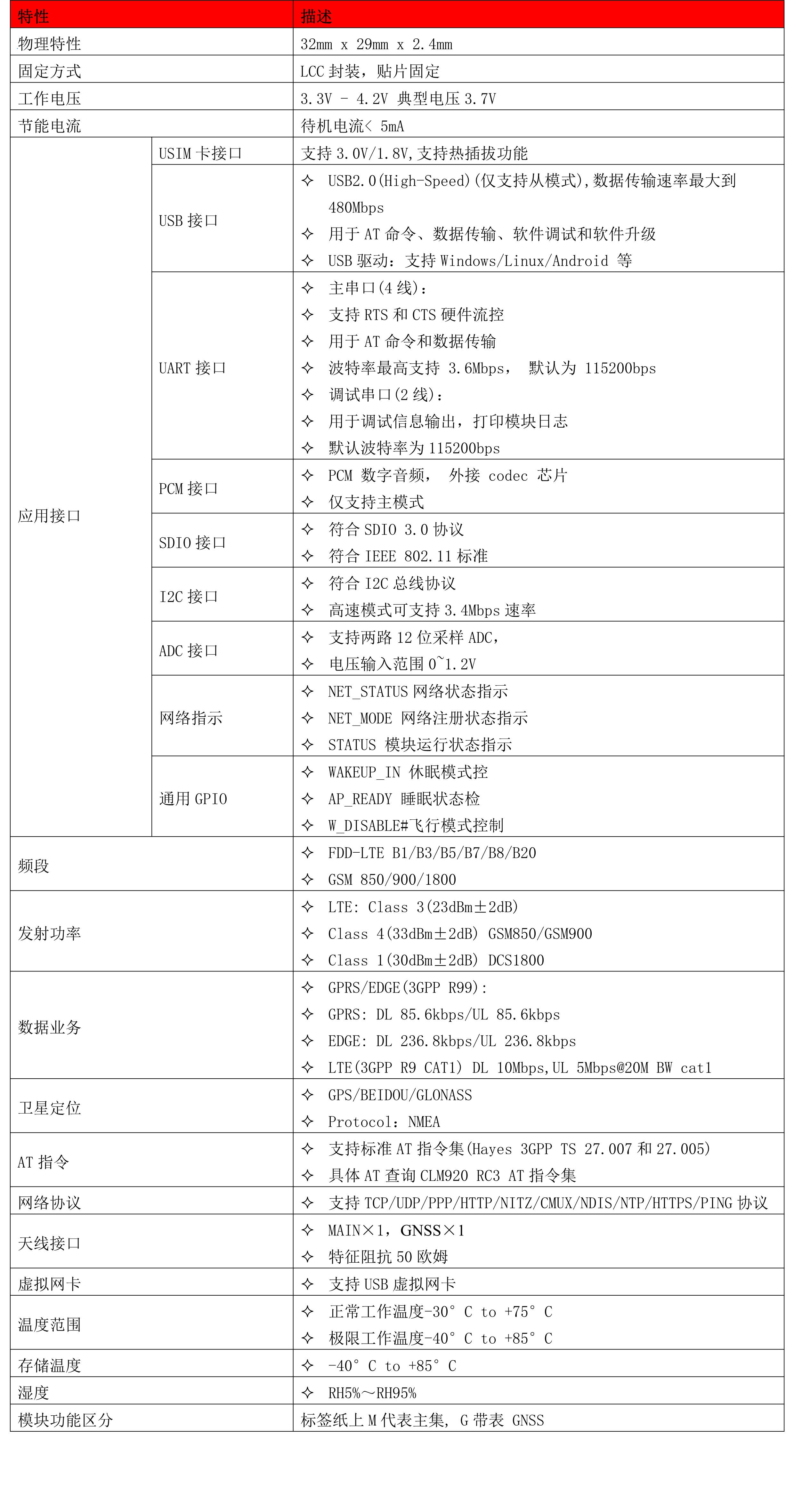 CLM920_RE3 是一款支持多制式、 多頻段的 LTE CAT1 應(yīng)用型模塊。 支持 BEIDOU/GPS/GLONSS 定位( 可選) , 支持 VoLTE 語音, 支持最高 10Mbps 下載速率和 5Mbps 上傳速率。CLM920_RE3 物聯(lián)網(wǎng)模塊具有強(qiáng)大的可擴(kuò)展能力, 內(nèi)置了豐富的網(wǎng)絡(luò)協(xié)議, 集成多個(gè)工業(yè)標(biāo)準(zhǔn)接 口, 并支持多種驅(qū)動(dòng)和軟件功能, 為客戶的應(yīng)用提 供了極大的靈活性和易集成性, 可應(yīng)用于如云喇叭、 POS、 POC、 FWP 等等。