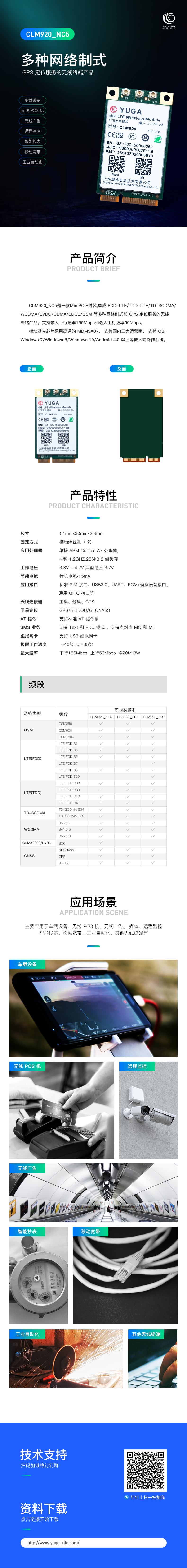 CLM920_NC5 Mini PCIE模塊是一款PCI Express Mini Card 1.2標(biāo)準(zhǔn)的模塊,是一款集成FDD-LTE/TDD-LTE/TD-SCDMA/WCDMA/EVDO/CDMA/EDGE/GSM等多種網(wǎng)絡(luò)制式和GPS定位服務(wù)的無線終端產(chǎn)品。